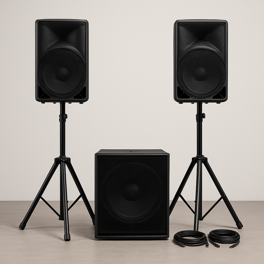 A powerful PA system package designed for larger events, weddings, parties, and live performances where extra bass and sound impact are essential. This offer includes: